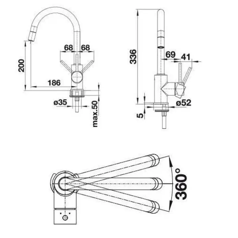 | Высота смесителя | 336 |