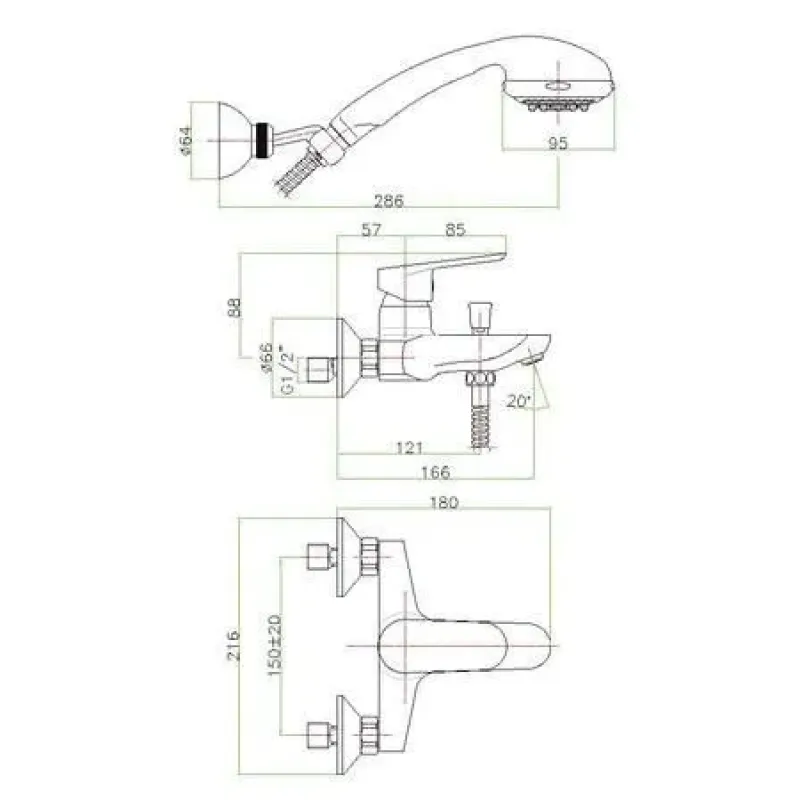 | Вынос излива | 166 мм |