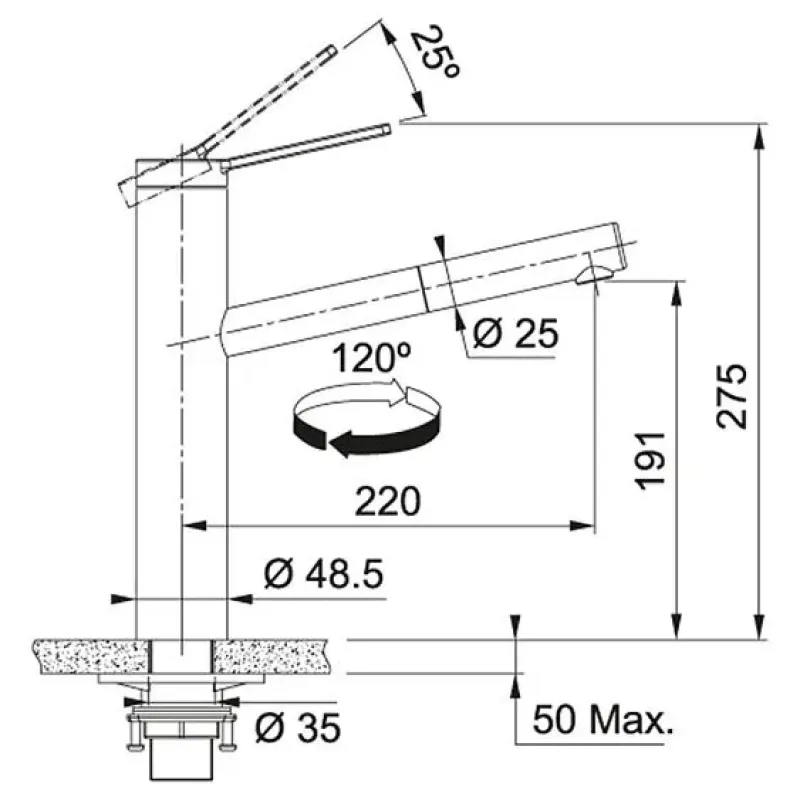 | Угол поворота излива | 120° |