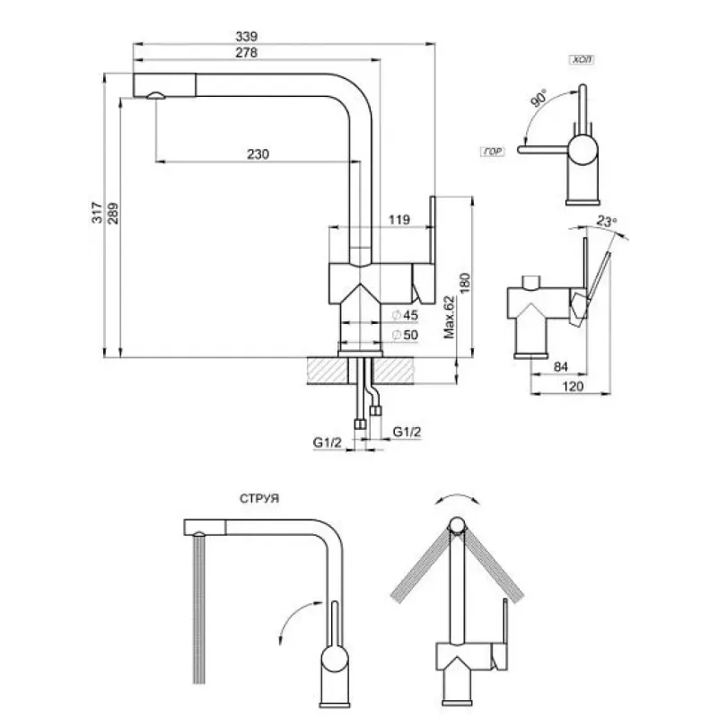 | Высота смесителя | 317 мм |