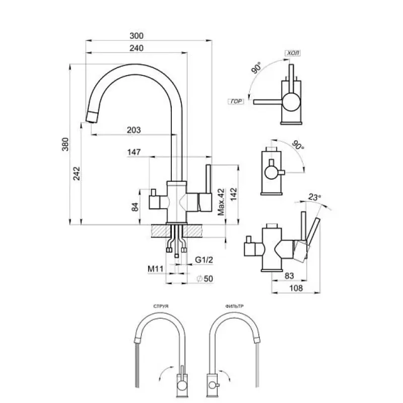 | Поворот излива | 360° |