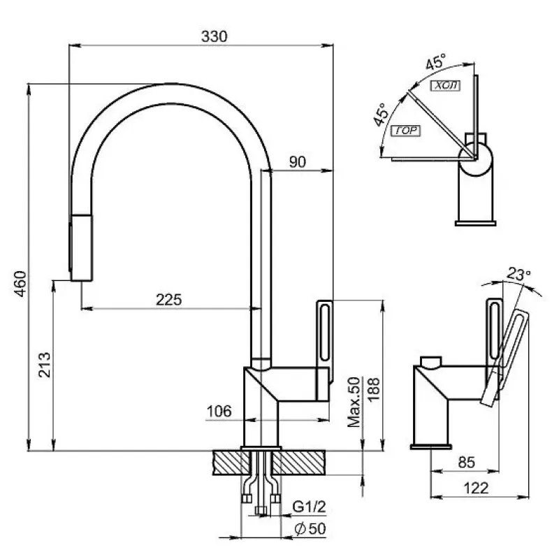 | Высота смесителя | 460 мм |
