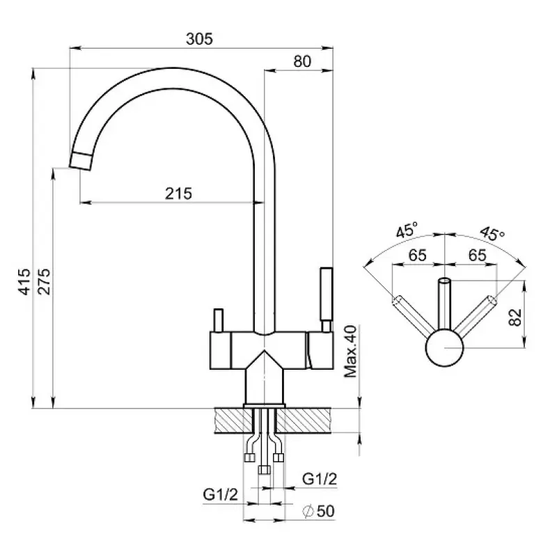 | Глубина излива | 215 мм |