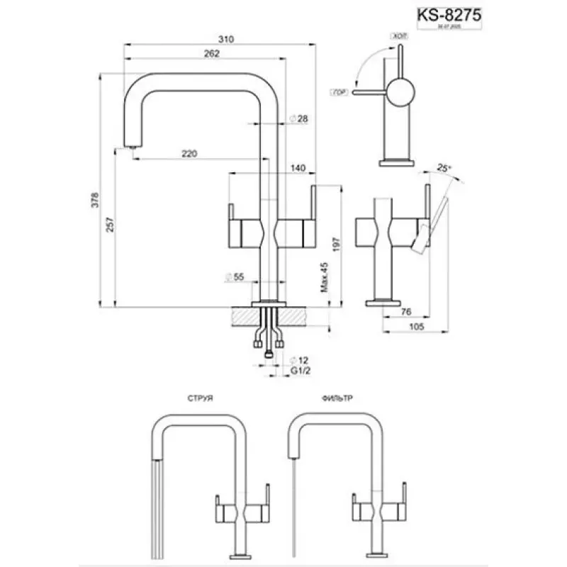 | Высота смесителя | 378 |