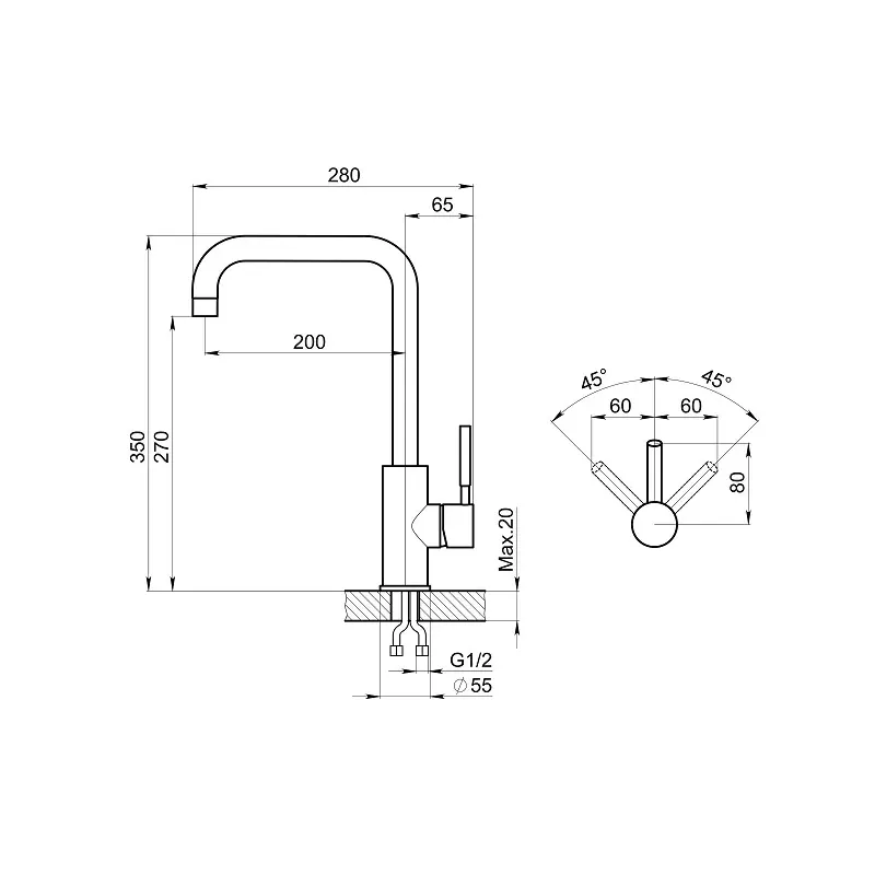 | Глубина излива | 200 мм |