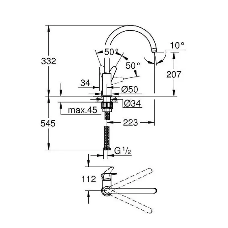 | Высота смесителя | 332 мм |
