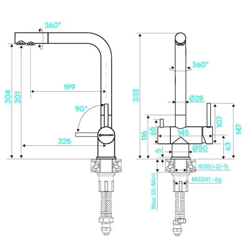 | Высота излива | 304 мм |