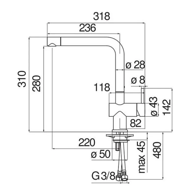 | Высота излива | 280 мм |
