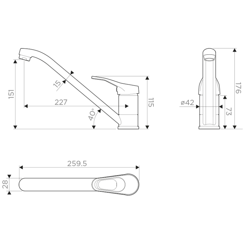 | Длина излива | 259.5 мм |