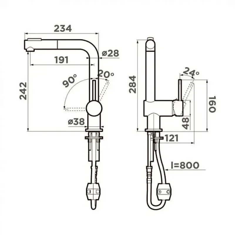 | Длина излива | 191 мм |