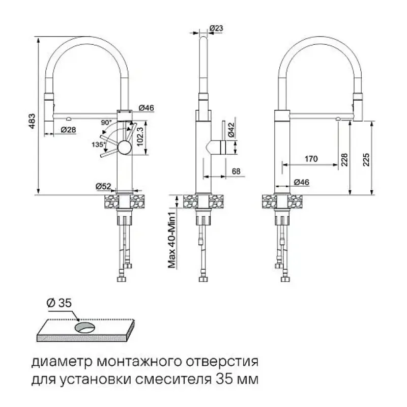 | Высота смесителя | 483 |