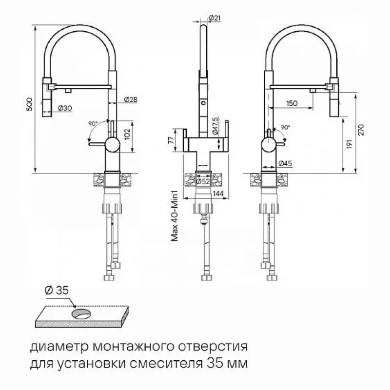 | Высота смесителя | 500 мм |