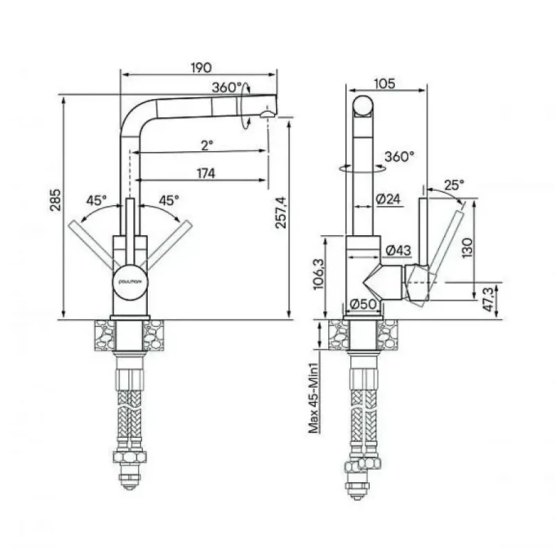 | Поворот излива | 360° |