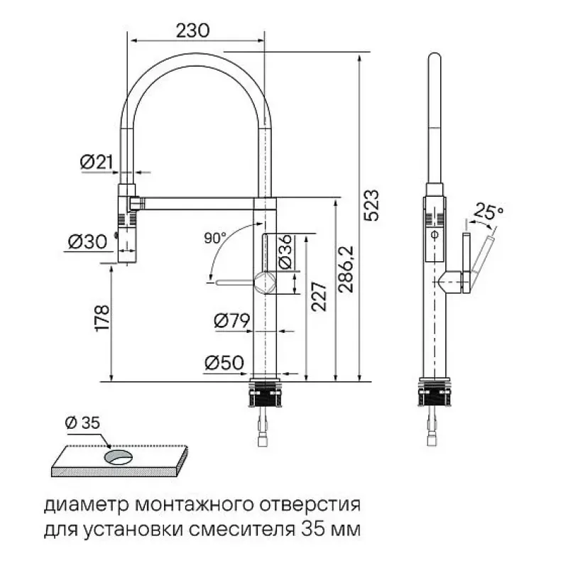 | Высота смесителя | 523 мм |