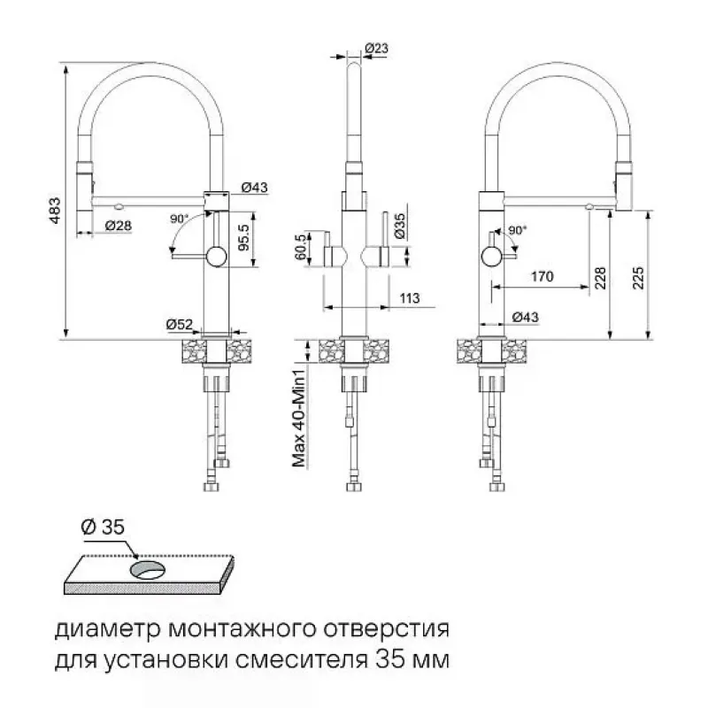 | Высота смесителя | 483 |