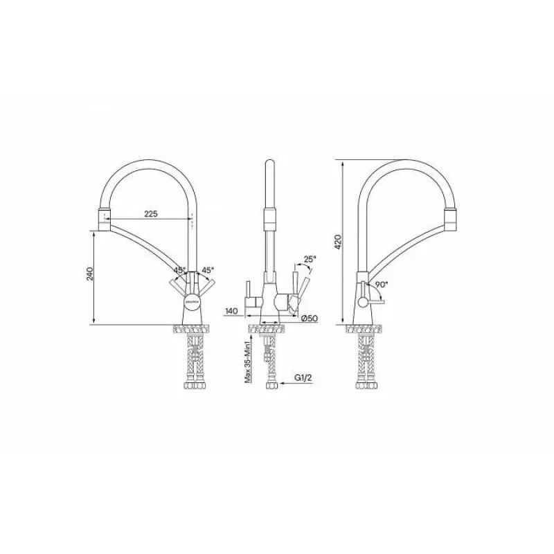 | Стандарт подводки | 1/2" |