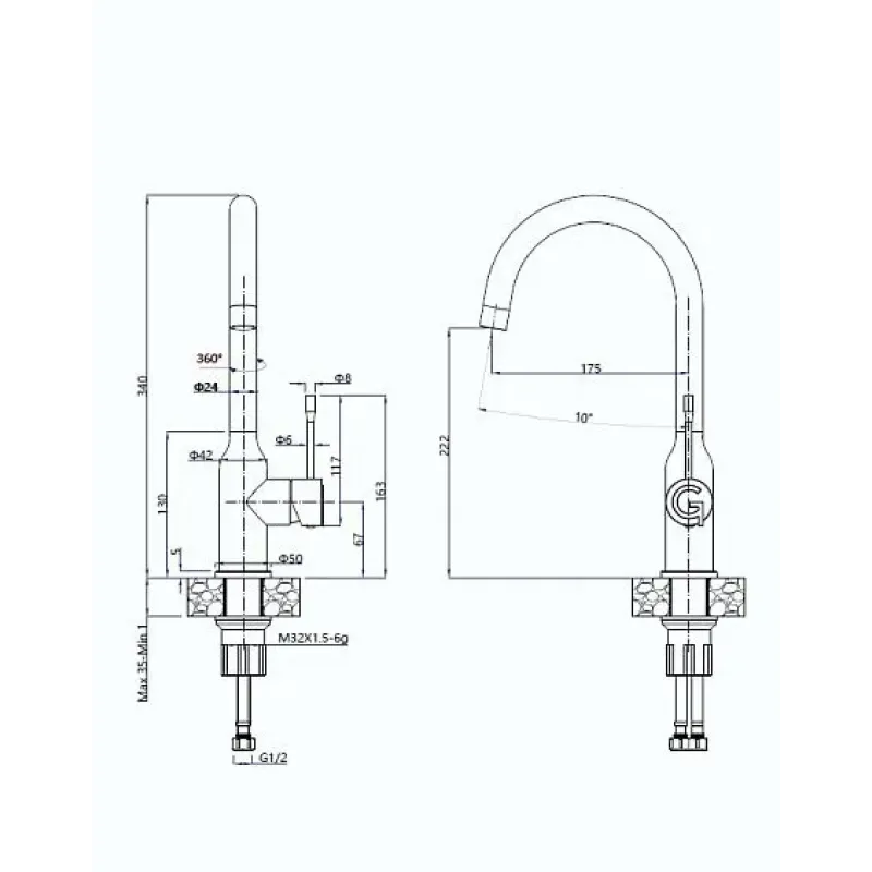 | Высота смесителя | 340 мм |