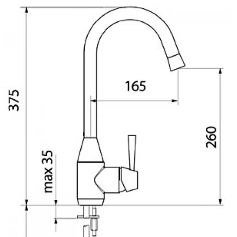 | Длина излива | 165 мм |
