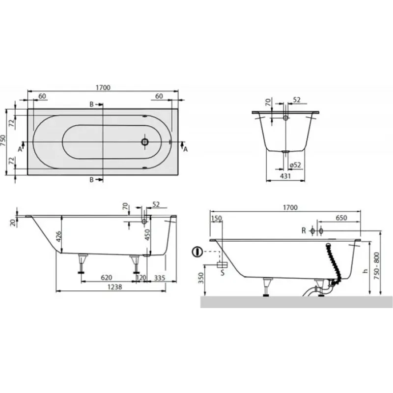 | Габариты (ШхГхВ) | 1700х750х426-450 мм |