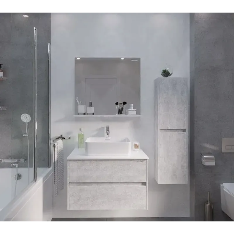 Зеркало GROSSMAN ЭДВАНС 80 см с полкой цемент светлый 208007*